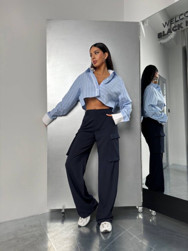 Στη δουλειά χρειαζόμαστε ένα πιο professional look και το cargo παντελόνι μπορεί να στο προσφέρει εύκολα! Απλά χρειάζεσαι ένα πουκάμισο που θα τα δέσει όλα όμορφα κι αβίαστα. Φόρα λοιπόν το cargo σου – σε μπεζ προτείνω εγώ – με ένα λευκό crop top και ένα γαλάζιο oversized πουκάμισο. Τα χρυσά αξεσουάρ και τα μαύρα chunky loafers είναι τα στοιχεία που θα απογειώσουν το look!