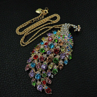 Ένα πραγματικό αριστούργημα, ένα μενταγιόν υπερπαραγωγή, σχεδιασμένο από την betsey Johnson με ένα τεράστιο παγόνι 11 X 6 εκατοστά!