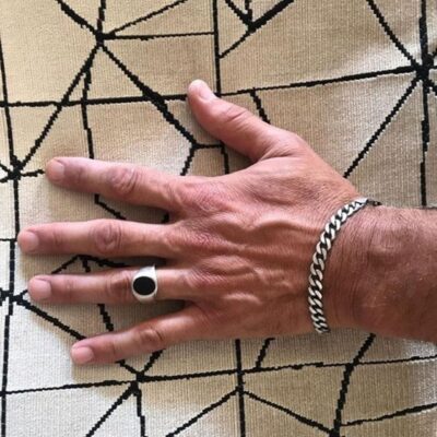 Ανδρικό, μοντέρνο βραχιόλι, κατασκευασμένα από 100% φυσικές, μαύρες, ηφαιστειακές πέτρες, 8mm. Περασμένες σε διπλό ελαστικό ιμάντα.