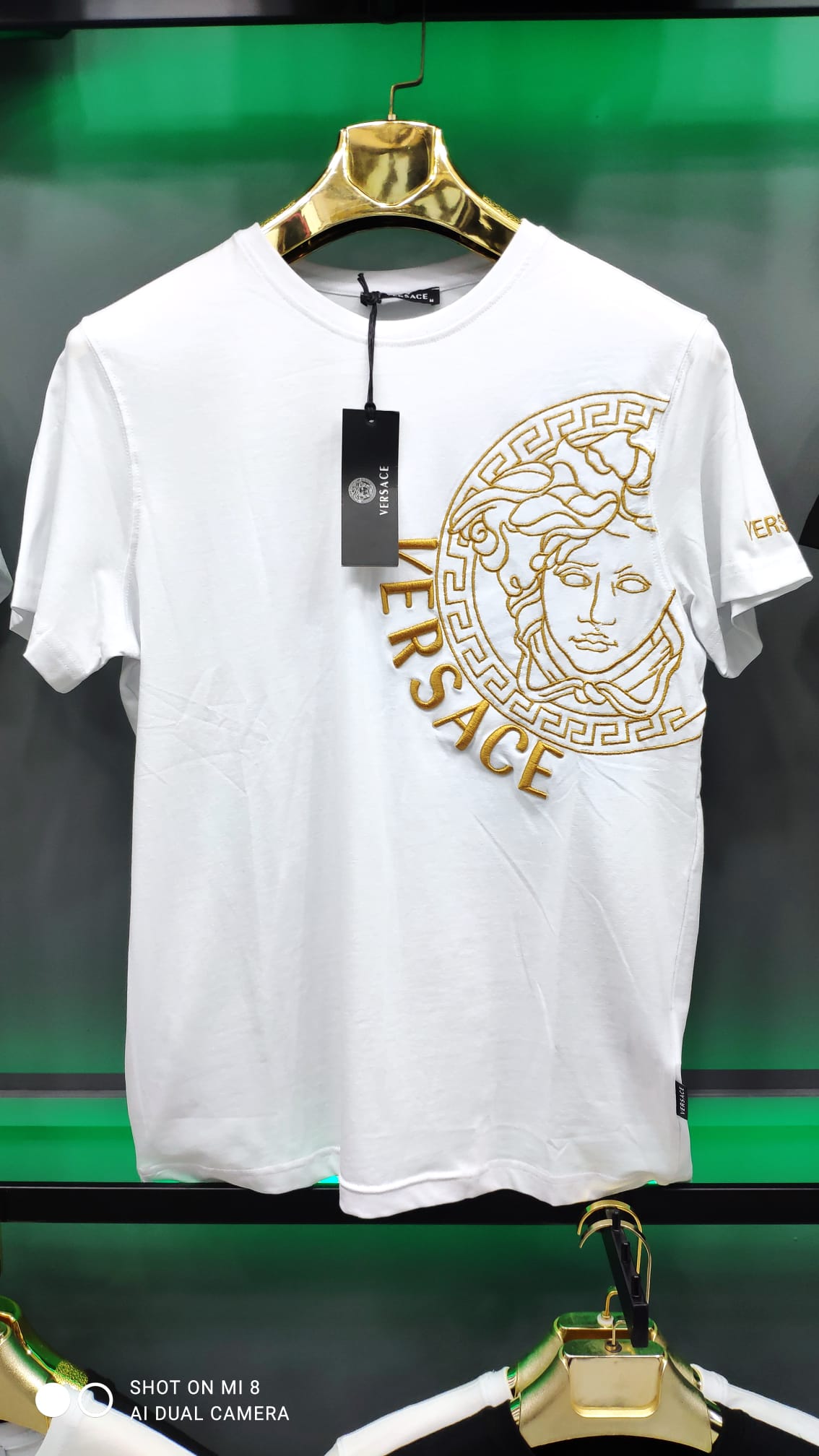 Το t-shirt συνοδεύεται με την ομώνυμη σακούλα σκόνης Versace και κουτί ή χάρτινη σακούλα Versace.