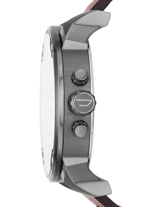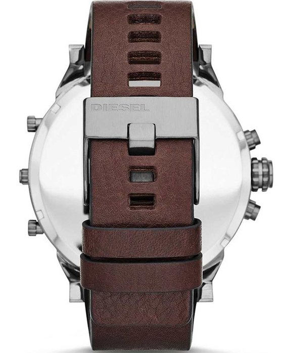 Ανδρικό, μοντέρνο και πρωτότυπο αναλογικό ρολόι τύπου DIESEL με κάσα από ανοξείδωτο ατσάλι! Δερμάτινο καφέ λουράκι μήκους 27,5 εκατοστών και με διάμετρο καντράν 5,2 εκατοστά.
