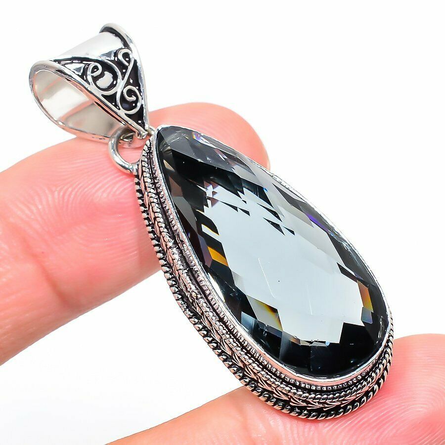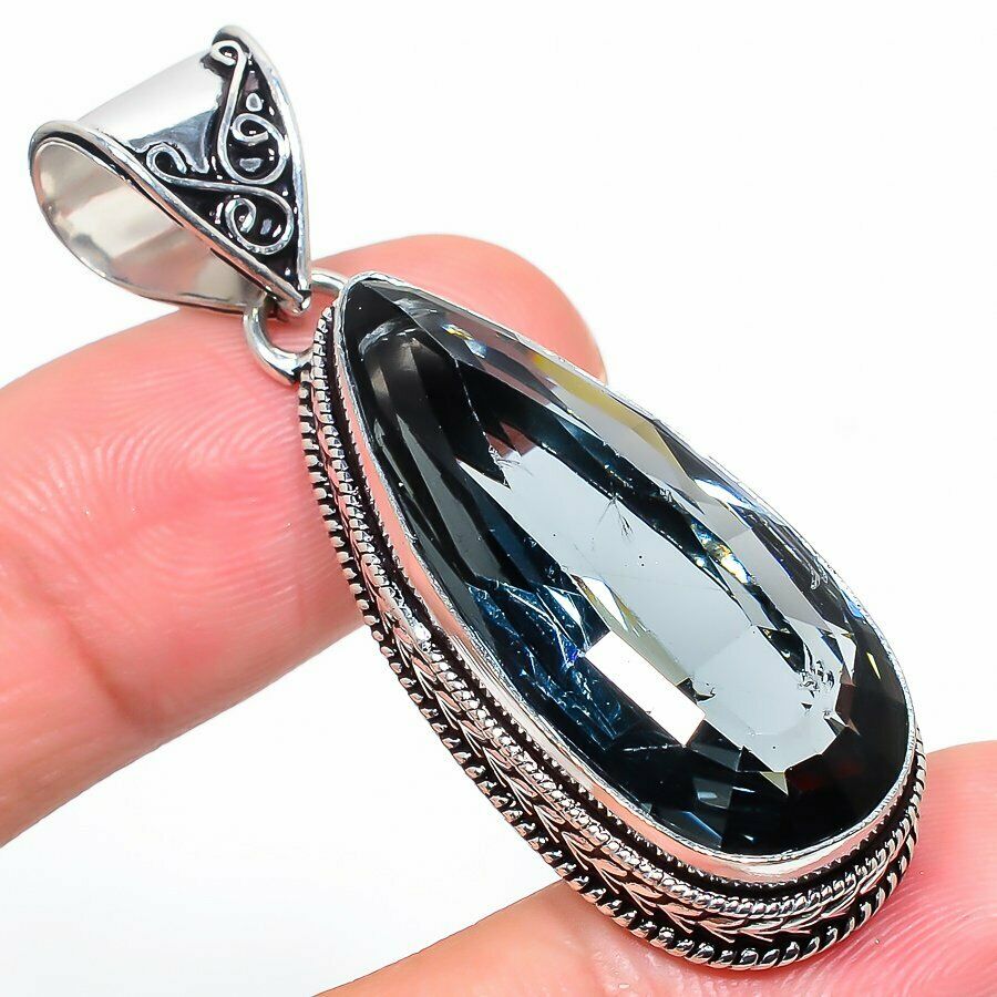 Ινδικό, χειροποίητο, μενταγιόν, ένα πραγματικό αριστούργημα! Κατασκευασμένο από ασήμι 925 διακοσμημένο με μαύρο Σπινέλλιο (Black Spinel) (Lab creation) σε κοπή pear, απίστευτης ομορφιάς και καθαρότητας. Eνα πολύ μεγάλο μοτίφ μήκους 5,4 εκατοστών.6.22 grams.