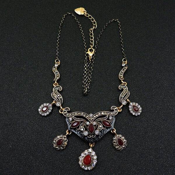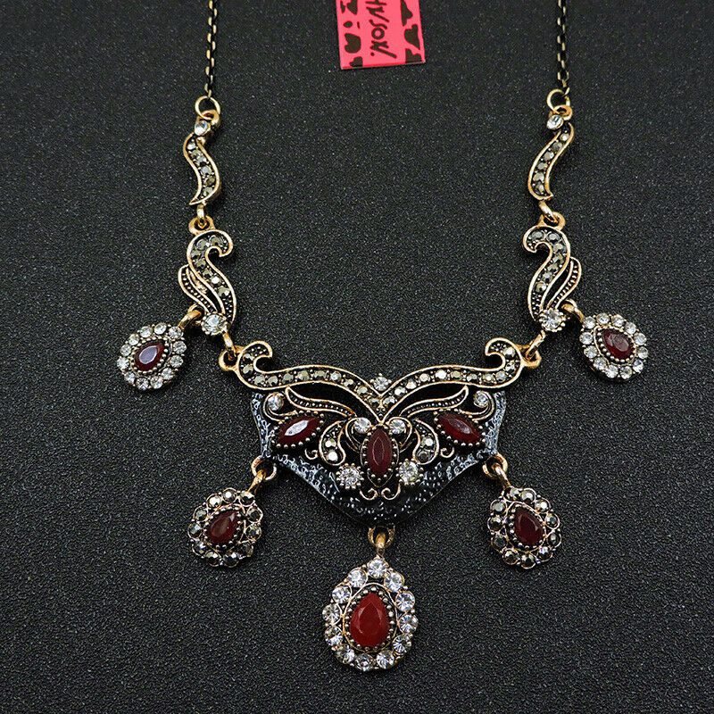 Πολύ ιδιαίτερο κόσμημα, κατασκευασμένο από ασήμι και χαλκό με αντικέ επεξεργασία. Μεγάλο μοτίφ 13 x 4,5 εκατοστά. Συνοδεύεται από την ανάλογη αλυσίδα 45 εκατοστών 5 εκατοστά το αλυσιδάκι προέκτασης στο πίσω μέρος που καταλήγει σε μία καρδιά με το λογότυπο της γνωστής σχεδιάστριας Betsey Johnson. Διακοσμημένο με ζιργκόν σε κοπή round. Εντυπωσιάζουν με τη λάμψη τους και την καθαρότητα τους τα κόκκινα κρύσταλλα σε κοπή pear.