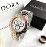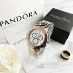 Γυναικείο ρολόι πολυτελείας PANDORA, αναλογικό, πολύ μοντέρνο, σε silver-rose/gold χρώμα με δίχρωμο μπρασελέ και καντράν!! Με μπρασελέ και καντράν από ανοξείδωτο ατσάλι υψηλής αντοχής και ποιότητας για καθημερινή χρήση και με ενισχυμένο, ορυκτό, αντιθαμβωτικό τζάμι στο καντράν του! Αντιαλλεργικό, σύμφωνα με τις απαιτήσεις της Ευρωπαϊκής Ένωσης!