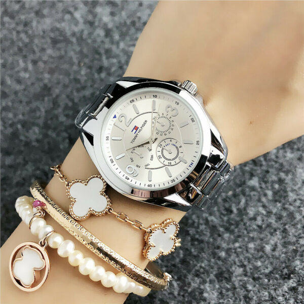 Γυναικείο ρολόι TOMMY HILFIGER πολυτελείας, σε χρώμα silver σε μπρασελέ και καντράν, με την κάσα του κατασκευασμένη από ανοξείδωτο ατσάλι! Υπέροχες λεπτομέρειες στο εσωτερικό της! Ένα ρολόι all-time classic! Αδιάβροχο μέχρι 3 Atm (πλύσιμο χεριών)!