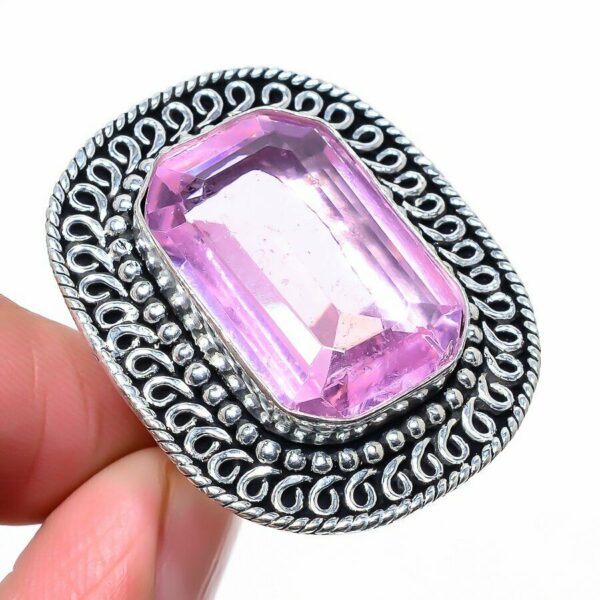 Δαχτυλίδι χειροποίητο, ινδικό.Kατασκευασμένο από μασίφ ασήμι 925 και διακοσμημένο με ροζ αμέθυστο (Lab creation) σε κοπή Emerald. Total Carat Weight: 50Ct