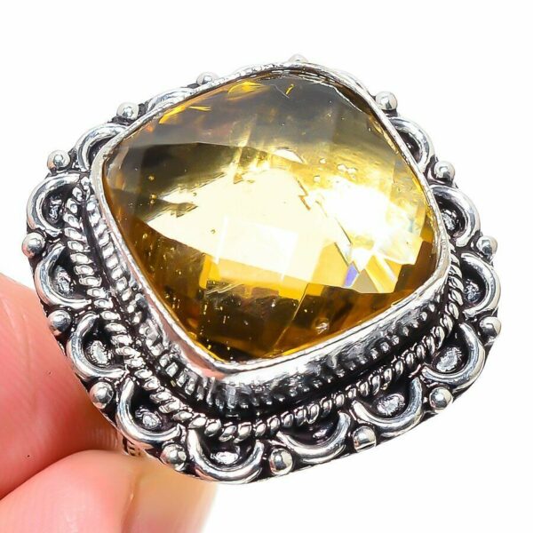 Δαχτυλίδι χειροποίητο, ινδικό. Kατασκευασμένο από μασίφ ασήμι 925 και διακοσμημένο με Citrine σε κοπή Cushion (Lab creation).Περιστοιχίζεται περιμετρικά από χειροποίητη δαντέλα και σχεδιασμένη γάμπα. Σας το προτείνουμε ανεπιφύλακτα για λαμπερές εμφανίσεις!!