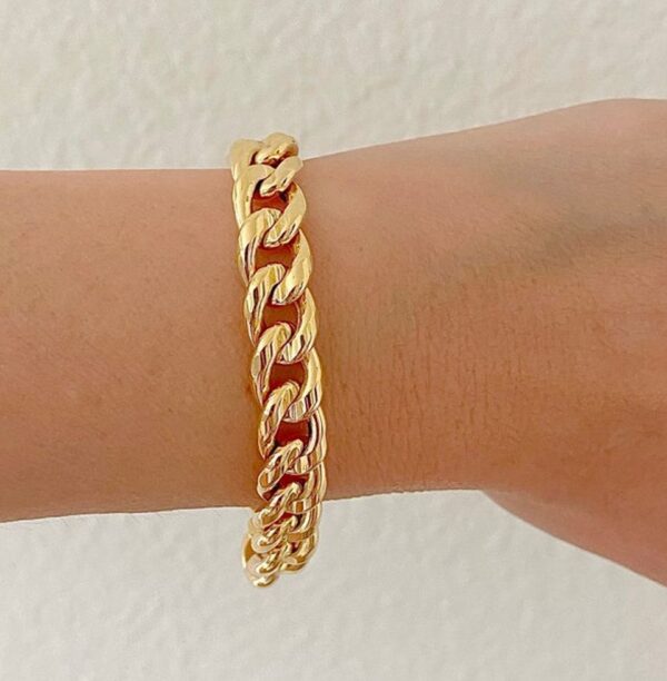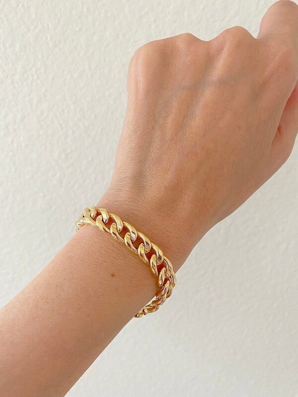 Κλασική μα πάντα διαχρονική η αλυσίδα χεριού (5mm) που σας προτείνουμε ανεπιφύλακτα. Επιμετάλλωση κίτρινου χρυσού 14 καράτια. Διαθέτει κούμπωμα ασφαλείας. Μήκος 22 εκατοστά. Ένα απαραίτητο κομμάτι για κάθε κοσμηματοθήκη.