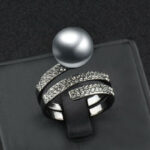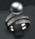 Εντυπωσιακό δαχτυλίδι πλάτους 2,3cm, με μαύρη round πέρλα south sea shell 10mm.Με επιμετάλλωση από λευκόχρυσο 18k και διακοσμημένο με λευκά αυστραλιανά κρύσταλλα σε κοπή round!!