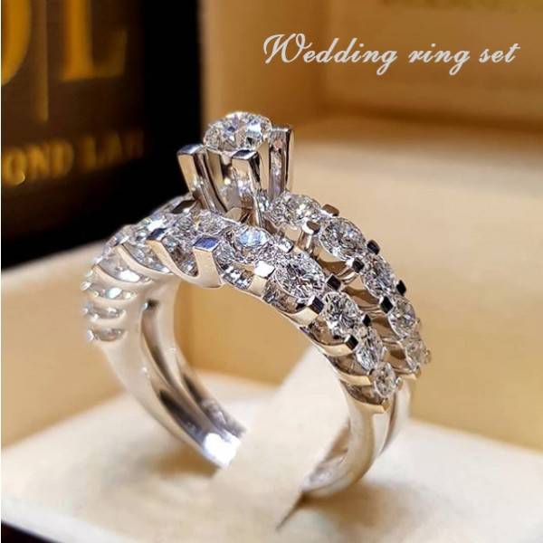 Επάργυρο 925 σετ δαχτυλιδιών αποτελούμενο από μία βέρα σειρέ και