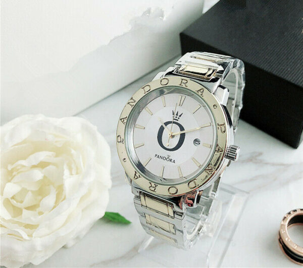 Γυναικείο ρολόι πολυτελείας PANDORA, αναλογικό, πολύ μοντέρνο, σε silver-gold χρώμα σε μπρασελέ και καντράν από ανοξείδωτο ατσάλι υψηλής αντοχής και ποιότητας για καθημερινή χρήση και με ενισχυμένο αντιθαμβωτικό τζάμι στο καντράν του! Αντιαλλεργικό, σύμφωνα με τις απαιτήσεις της Ευρωπαϊκής Ένωσης! Διαθέτει και ένδειξη ημερομηνίας! Εσωτερικά το καντράν του έχει δίχρωμη απόχρωση. Το ρολόι έρχεται σε εσάς σε πολυτελή συσκευασία δώρου.