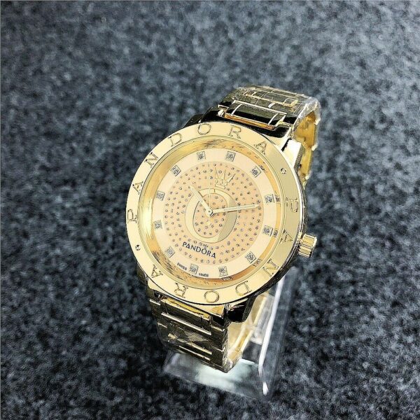 Γυναικείο ρολόι πολυτελείας PANDORA, αναλογικό, πολύ μοντέρνο, σε gold χρώμα σε μπρασελέ και καντράν υψηλής αντοχής και ποιότητας για καθημερινή χρήση και με ενισχυμένο ορυκτό τζάμι στο καντράν του! Διακοσμημένο εσωτερικά με λευκά αυστραλιανά κρύσταλλα σε κοπή round!