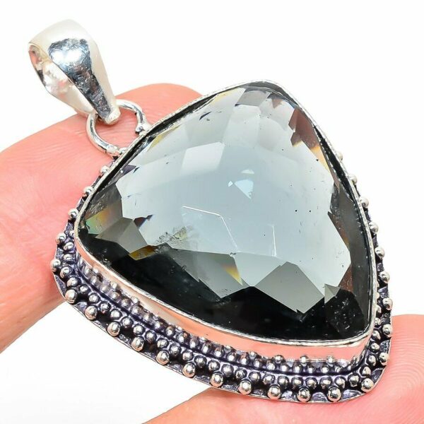 Ινδικό, χειροποίητο, μενταγιόν, ένα πραγματικό αριστούργημα! Κατασκευασμένο από ασήμι 925 διακοσμημένο με μαύρο Σπινέλλιο (Black Spinel) (Lab creation) σε κοπή Trillion , απίστευτης ομορφιάς και καθαρότητας. Eνα πολύ μεγάλο μοτίφ μήκους 5 εκατοστών .6.22 grams.