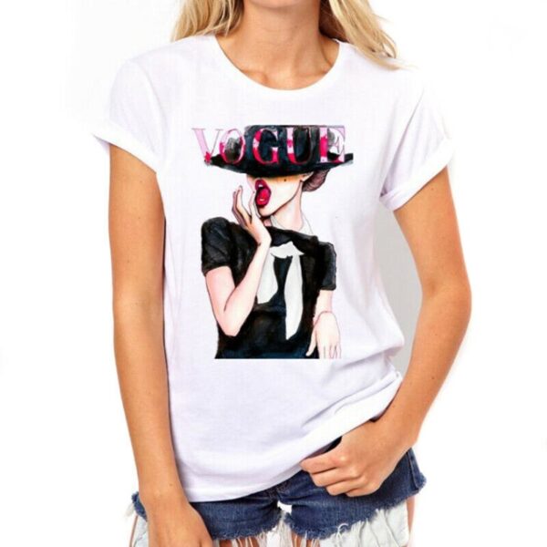 Καλοκαιρινό λευκό t-shirt με την επωνυμία Vogue. Κατασκευασμένο από ελληνική βιοτεχνία.