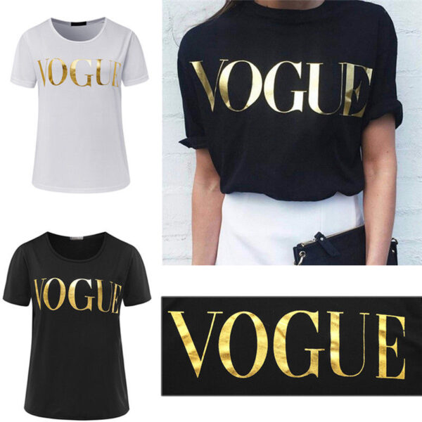 Καλοκαιρινό t-shirt με την επωνυμία Vogue. Κατασκευασμένο από ελληνική βιοτεχνία διαθέσιμο και ετοιμοπαράδοτο σε όλα τα νούμερα.