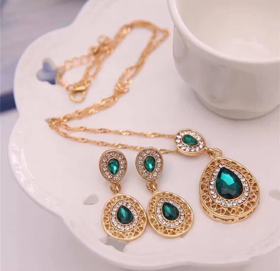 Κλασικό και διαχρονικό σετ, επάργυρο 925, που αποτελείται από μενταγιόν σκουλαρίκια και δαχτυλίδι διακοσμημένα με Πράσινα ζαφείρια.