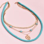 Αναδείξτε τη sexy πλευρά του εαυτού σας και καταπλήξτε τα πλήθη με αυτό το άκρως εντυπωσιακό κολιέ 5 σειρών.Είναι από τα πιο hot trends του καλοκαιριού σας το προτείνουμε ανεπιφύλακτα για τολμηρές εμφανίσεις. Απόλυτος ο συνδυασμός χρυσού και πέτρες τυρκουάζ. Διαθέτει αλυσιδάκι προέκταση 8 εκατοστών στο πίσω μέρος.