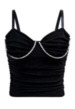 -Kορμάκι με άνοιγμα στο στήθος, λευκά κρύσταλλα σε κοπή round, και ενίσχυση στο στήθος.