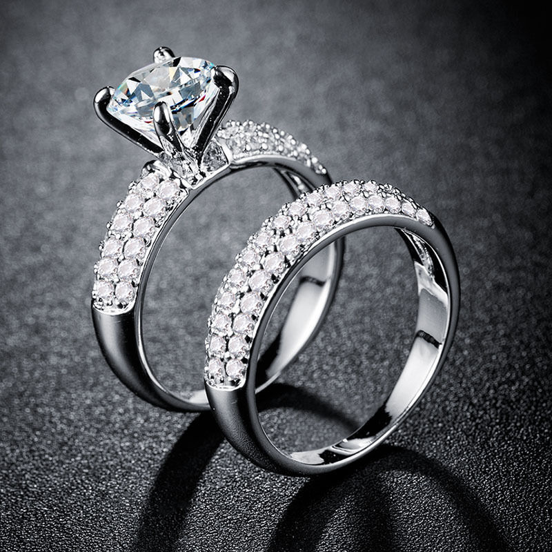 Silver σετ 2 δαχτυλιδιών που αποτελείται από βέρα (δαχτυλίδι σειρέ), με λευκά ζαφείρια (lab-created) σε κοπή round. Μονόπετρο δαχτυλίδι διακοσμημένο με λευκό ζαφείρι 8mm (lab-created) σε κοπή round και μικρότερα λευκά ζαφείρια σε κοπή round. Βρείτε το ιδιαίτερο δικό σας δαχτυλίδι αρραβώνων. Πολλά μοναδικά σχέδια! Αγοράστε άμεσα με δωρεάν τα έξοδα αποστολής με αγορές άνω των 89€.