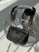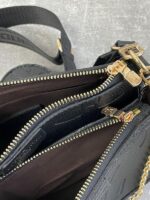 Διαμορφωμένο από καμβά με μοτίβο μονόγραμμα στις πλευρές των δύο pochettes. Διαθέτει και αφαιρούμενη αλυσίδα χρυσού τόνου και ρυθμιζόμενο μαύρο ιμάντα Jacquard με χαραγμένο το λογότυπο για πολλές επιλογές μεταφοράς. Εντυπωσιακό το λογότυπο στο κέντρο της τσάντας!