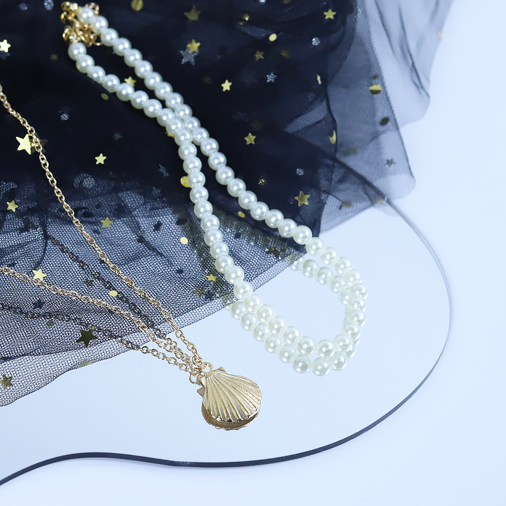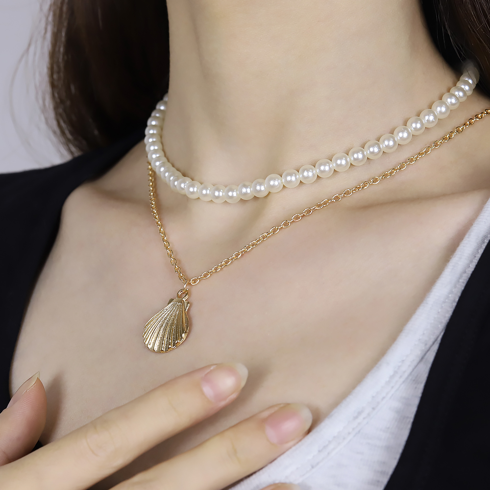 Μοντέρνο κολιέ “Renaissance” 2 σειρών με μία πινελιά ρομαντισμού! Αποτελείται από μία αλυσίδα με χρυσό κοχύλι και μία σειρά πέρλες. Συνδυάστε το με το κόκκινο ή μαύρο φόρεμα σας και κλέψτε όλα τα βλέμματα.