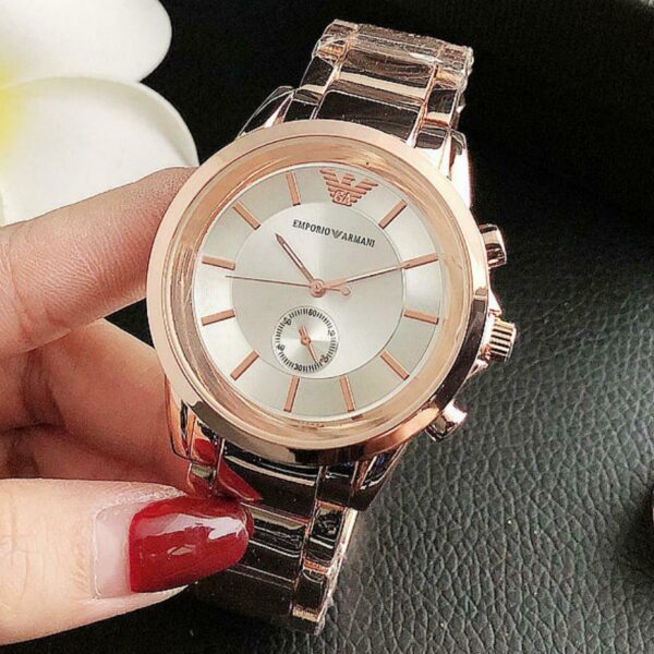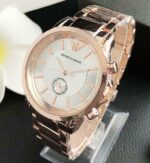 Πανέμορφο γυναικείο αναλογικό ρολόι πολυτελείας EMPORIO ARMANI με το μπρασελέ του σε rose- gold απόχρωση! Η κάσα του από ανοξείδωτο ατσάλι και η διάμετρος της είναι 3,6cm! Λευκό καντράν με rose-gold αποχρώσεις που αναδεικνύουν την ομορφιά του!