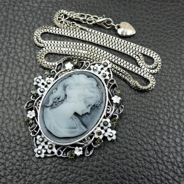 Πανέμορφο κολιέ καμέο με χειροποίητο σκάλισμα γυναικείο πορτρέτο - Swan Offers