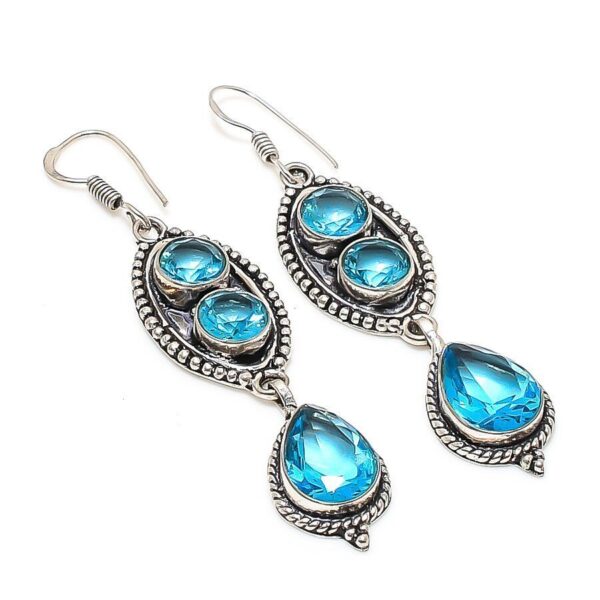 Χειροποίητα ινδικά σκουλαρίκια, κατασκευασμένα από ασήμι 925. Διακοσμημένα με ελβετικό μπλε τοπάζι (Swiss Blue Topaz) (lab creation) σε κοπή round και pear.