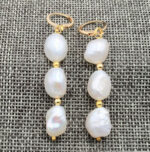 Για εσάς που αγαπάτε τα μαργαριτάρια σας παρουσιάζουμε υπέροχα σκουλαρίκια διακοσμημένα με τρία 100% φυσικά μαργαριτάρια γλυκού νερού 10-11mm.Επιμετάλλωση κίτρινου χρυσού 14 καράτια.Τα σκουλαρίκια έχουν μήκος 5,5 εκατοστά.