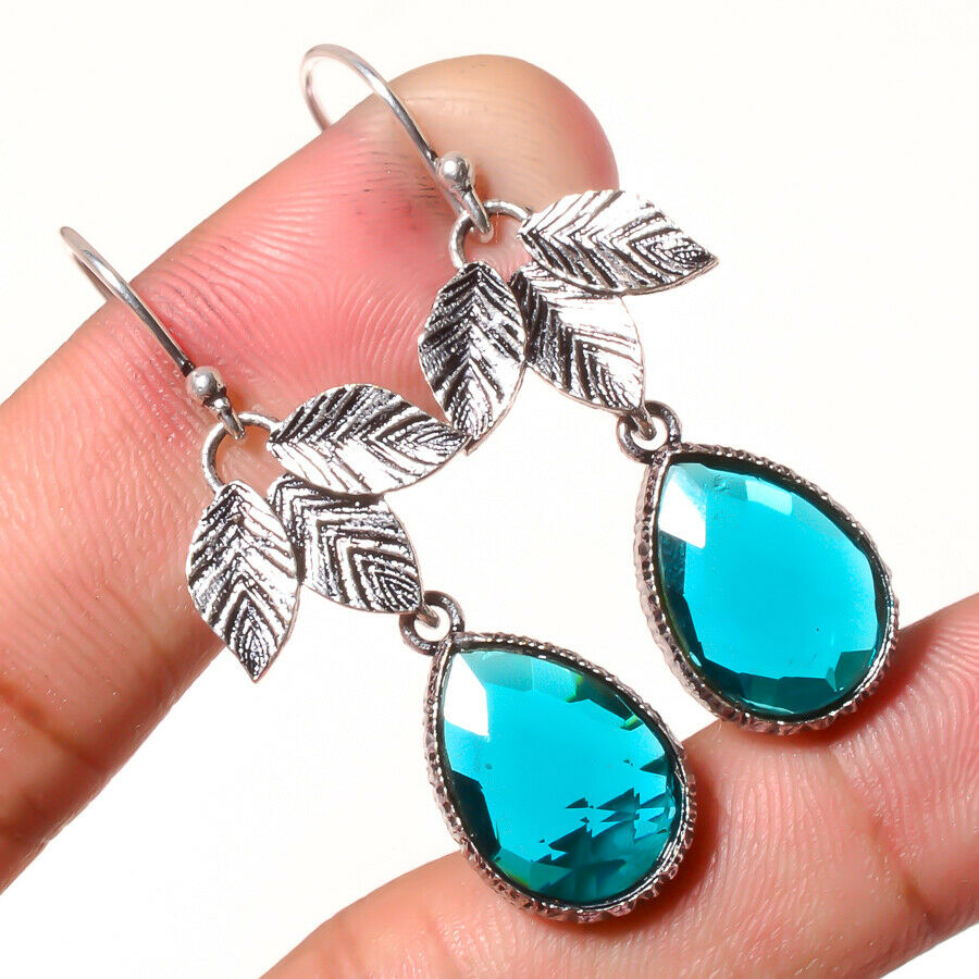 Χειροποίητα, ινδικά σκουλαρίκια, κατασκευασμένα από ασήμι 925. Διακοσμημένα με φυσικό,ορυκτό,πολύτιμο, Απατίτη χαλαζία,ποιότητας AAA, σε κοπή oval. Tα σκουλαρίκια έχουν μήκος 4,6 εκατοστά. Total Carat Weight:55 (TCW).