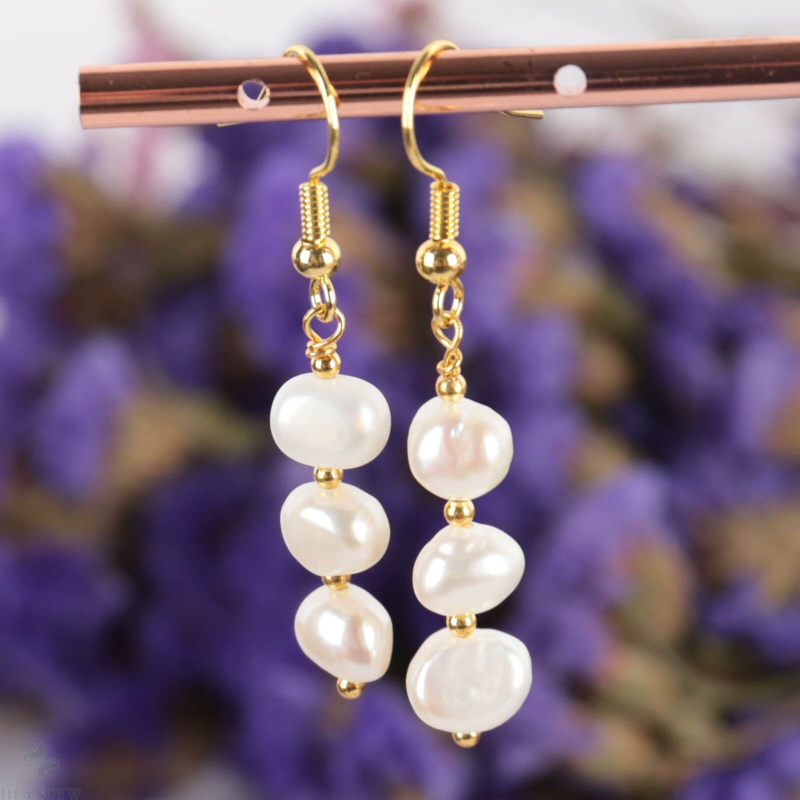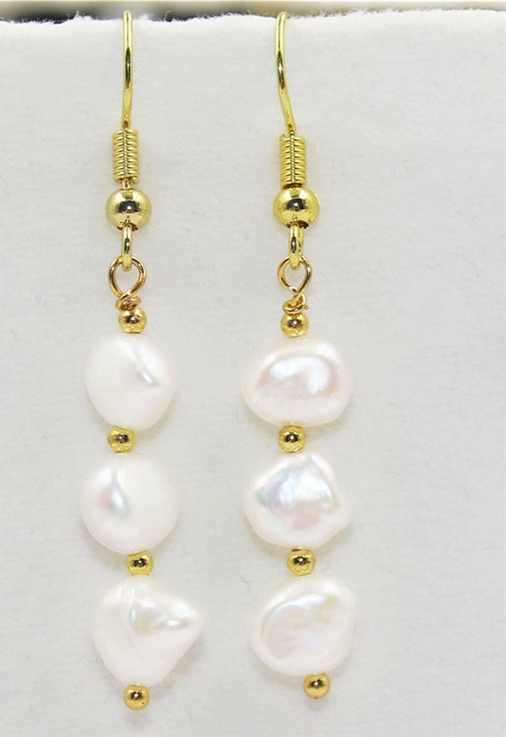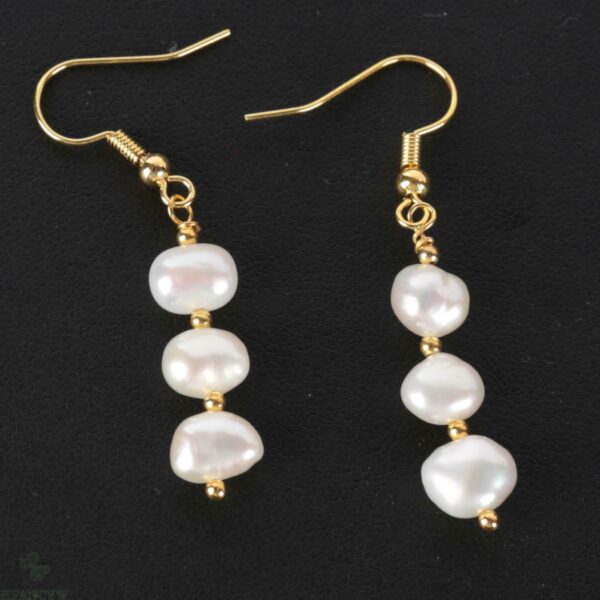 Σκουλαρίκια, μακριά κρεμαστά με επιμετάλλωση από χρυσό 18k διακοσμημένα με 3 φυσικά, Baroque, Freshwater λευκά μαργαριτάρια ΑΑΑ 8-10 mm.