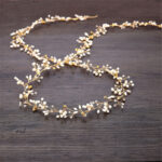 Bridal look για την ομορφότερη στιγμή της ζωή σας, το γάμου σας. Nυφική κορδέλα 52 εκατοστών κατασκευασμένη από εύκαμπτο ατσάλι, διακοσμημένη με λευκά κρύσταλλα και λευκές πέρλες. Mε επιμετάλλωση κίτρινου & λευκού χρυσού. Τιμή 37 ευρώ. Κωδικός WG42
