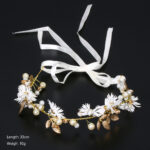 Ένα ιδιαίτερο κόσμημα για την ομορφότερη στιγμή της ζωή σας, το γάμου σας. Τιάρα γάμου (στεφανάκι) κατασκευασμένη από εύκαμπτο ατσάλι, διακοσμημένη με λευκά αυστραλιανά κρύσταλλα, πέρλες & λουλούδια. Mε επιμετάλλωση κίτρινου χρυσού και ιβουάρ σατέν κορδέλα. Τιμή 36 ευρώ. Κωδικός WG45