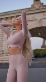 Μοντέρνο και cool σχέδιο με ματ υφή που σας προσφέρει μέγιστη άνεση. Μακρυμάνικο Τop Μπλουζάκι, Σετ με push-up ψηλόμεσο Κολάν Σύσφιξης σε μπέζ χρώμα.