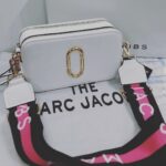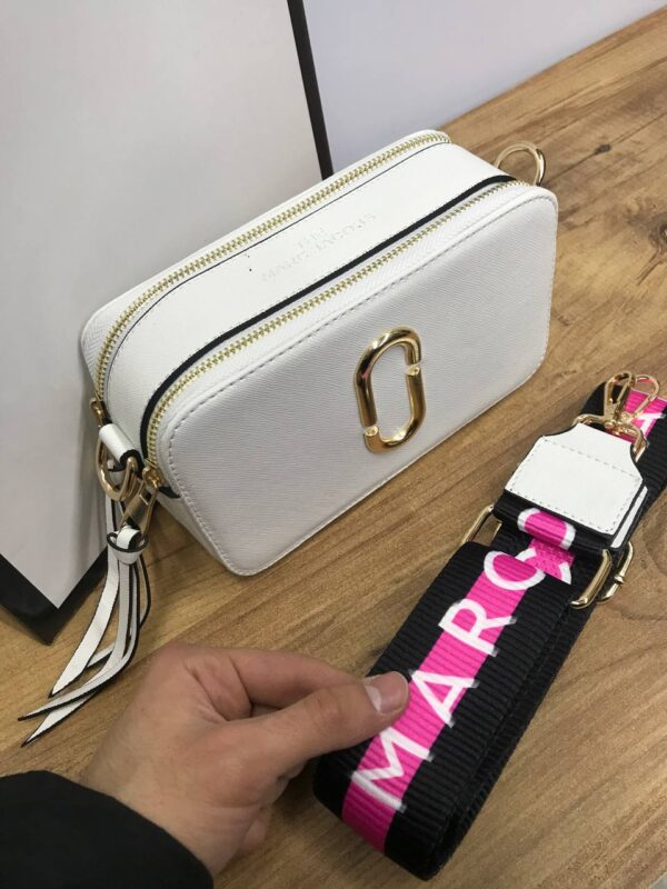 Ρυθμιζόμενος και αφαιρούμενος ροζ ιμάντας με το λογότυπο Marc Jacobs.