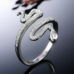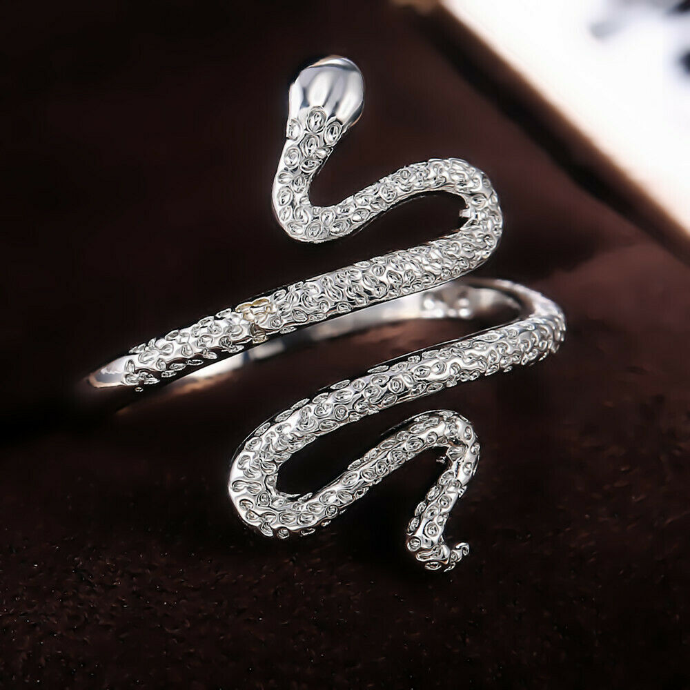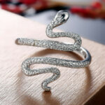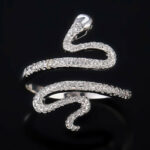 Υπέροχο δαχτυλίδι φίδι με λευκές πέτρες ζιργκόν. Λαμπερό κόσμημα για ξεχωριστές εμφανίσεις! Κατασκευασμένο από ασήμι 925, διακοσμημένο με λευκά ζιργκόν σε κοπή round.