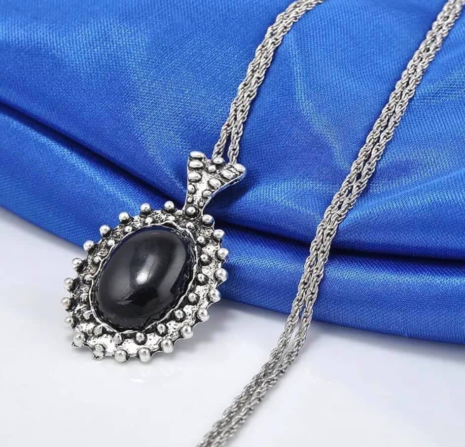 Μακρύ κολιέ, με μήκος αλυσίδας 80 εκατοστά πάχος αλυσίδας 3mm με μοτίφ μία μαύρη πέτρα με λουστρέ φινίρισμα!