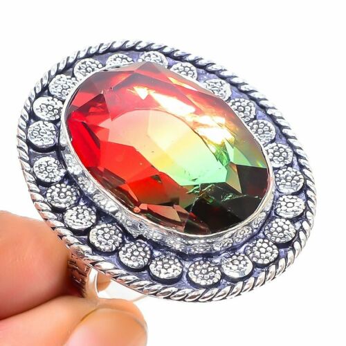 Υπέροχο χειροποίητο δαχτυλίδι, ασημένιο 925, διακοσμημένο με 100% ορυκτή πολύτιμη πέτρα πολύχρωμης τουρμαλίνης (Multi Color Tourmaline), εξαιρετικής καθαρότητας και λάμψης, σε κοπή oval. Ένα μεγάλο δαχτυλίδι με διαστάσεις 3,5 Χ 3 εκατοστά!