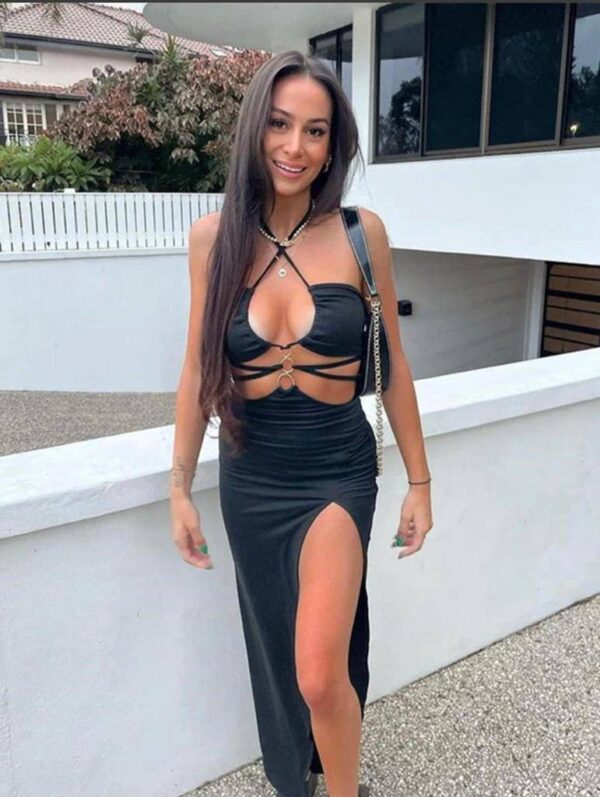 Η Εφαρμοστή γραμμή που αγκαλιάζει το σώμα και το σκίσιμο στο πλάι προσθέτουν μια δόση κομψότητας και θηλυκότητας. Η ελαστικότητα του υλικού αναδεικνύει μια τέλεια σιλουέτα, αναδεικνύοντας τις καμπύλες σας. Ιδανικό για βραδινές εξόδους, αυτό το φόρεμα θα σας κερδίσει με την εκλεπτυσμένη του εμφάνιση και την άνετη εφαρμογή του.