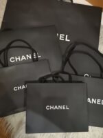 Χάρτινη τσάντα σε χρώμα μαύρο, κατασκευασμένη από χοντρό ιλουστρασιόν χαρτόνι.  Σε 2 μεγέθη extra large και medium για να επιλέξετε αυτή που σας ταιριάζει καλύτερα.