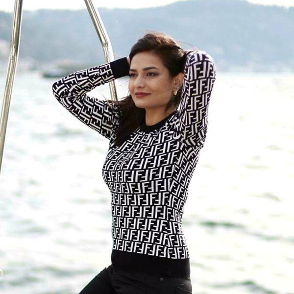 Εξαιρετικής ποιότητας χειμερινό γυναικείο Πλεκτό Jumper επωνυμίας FENDI. Κατασκευασμένο από 95% βισκόζ και 5% λύκρα. Made in Italy.