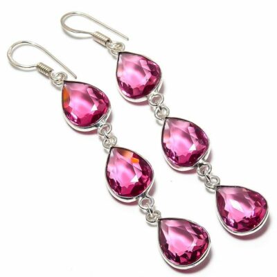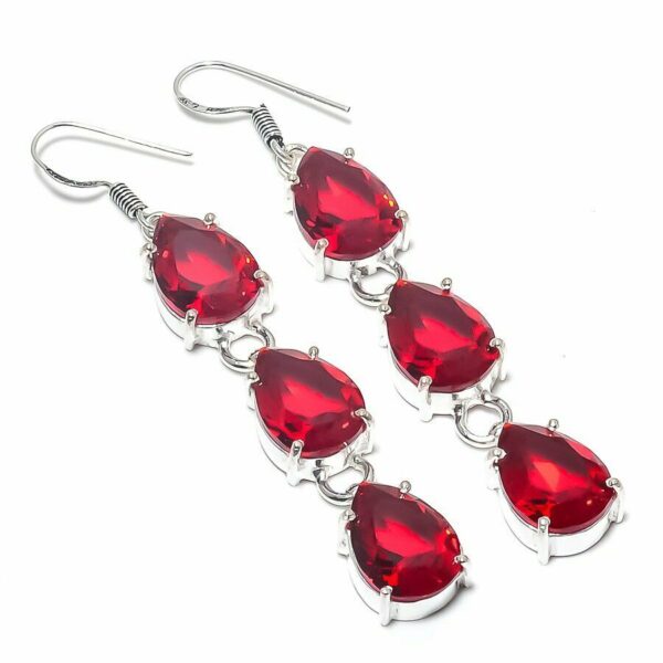 Χειροποίητα, κρεμαστά σκουλαρίκια, κατασκευασμένα από ασήμι 925, διακοσμημένα με γρανάτη μοζαμβίκης (Mozambique Garnet) σε κοπή pear (Lab creation). Τα σκουλαρίκια έχουν μήκος 6,9εκατοστά.
