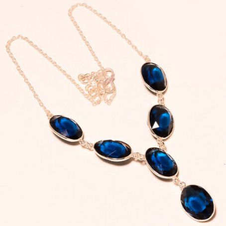 Χειροποίητο, ινδικό κολιέ, κατασκευασμένο από ασήμι 925 και διακοσμημένο με ημιπολύτιμους ορυκτούς λίθους Ινδολίτης τουρμαλίνης σε κοπή οβάλ. Tο κολιέ έχει μήκος 45cm.