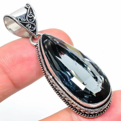 χειροποίητο, μενταγιόν από ασήμι 925 με μαύρο Σπινέλλιο