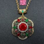 Πολύ ιδιαίτερο κόσμημα, κατασκευασμένο από ασήμι και χαλκό με αντικέ επεξεργασία. Μεγάλο μοτίφ 5.5cmx5.5cm, το οποίο συνοδεύεται από την ανάλογη αλυσίδα 70 εκατοστών. Σχεδιασμένο από την Betsey Johnson. Διακοσμημένο με ζιργκόν σε κοπή round και την κεντρική κόκκινη πέτρα σε κοπή round. Φορέστε το χειροποίητο κολιέ και χαρίστε αέρα κομψότητας στην εμφάνισή σας.