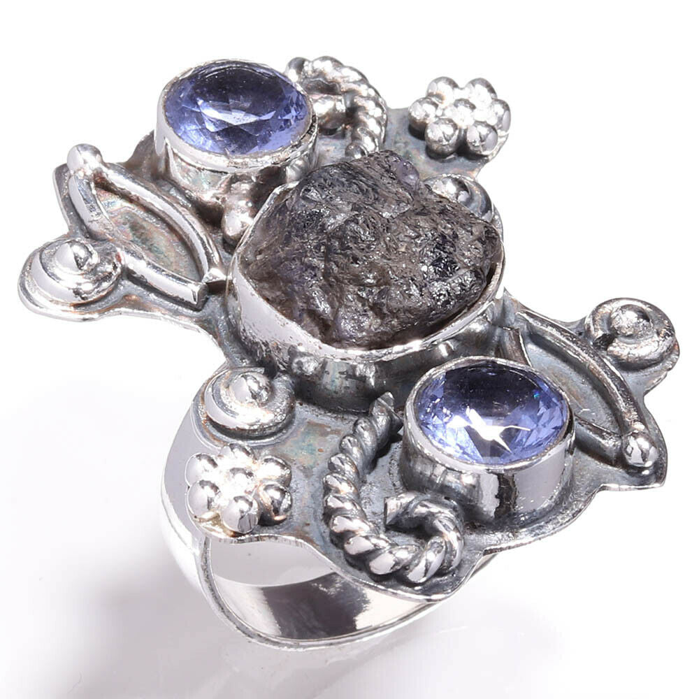 Χειροποίητo ινδικό δαχτυλίδι ασημένιο 925 με μαύρη τουρμαλίνη και μπλέ τοπάζι. - Swan Offers