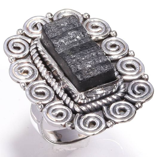 Χειροποίητo ινδικό δαχτυλίδι, κατασκευασμένο από ασήμι 925. Διακοσμημένο με 100% φυσική, ορυκτή, ακατέργαστη πέτρα μαύρης τουρμαλίνης!