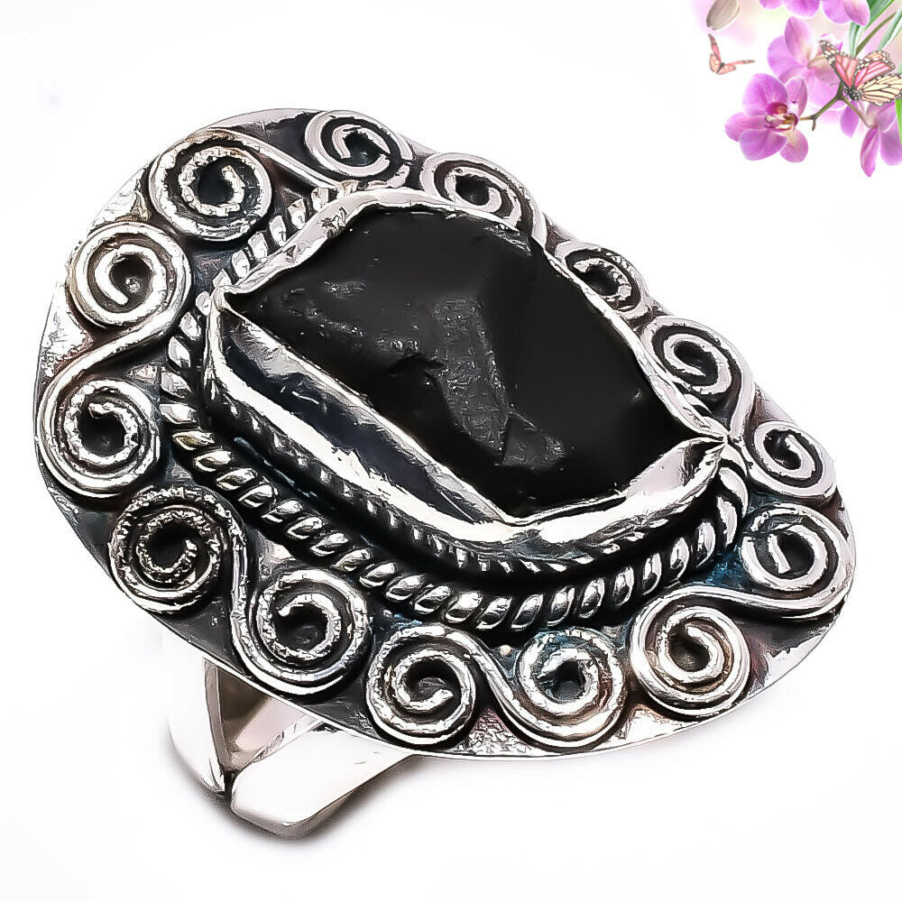 Χειροποίητo ινδικό δαχτυλίδι, κατασκευασμένο από ασήμι 925. Διακοσμημένο με 100% φυσική, ορυκτή, ακατέργαστη πέτρα μαύρης τουρμαλίνης!