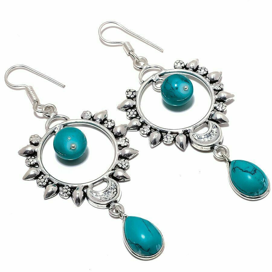 Χειροποίητα, ινδικά σκουλαρίκια κατασκευασμένα από μασίφ ασήμι 925 και διακοσμημένα με απαράμιλλης ομορφιάς ορυκτές πέτρες, Santa Rosa Turquoise, σε κοπή pear & round.