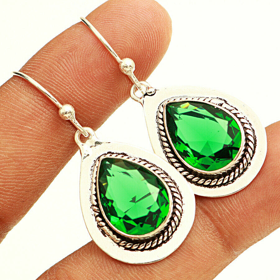 Χειροποίητα, ινδικά σκουλαρίκια κατασκευασμένα από μασίφ ασήμι 925 και διακοσμημένα με υπέροχες ορυκτές πέτρες,Chrome Diopside, σε κοπή oval & round.